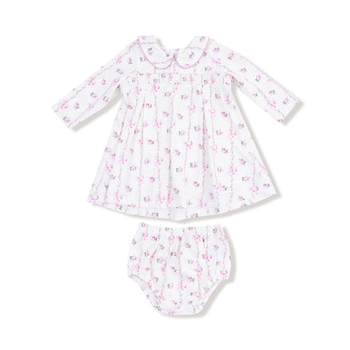 Dainty Buds and Bows Stripe Dress with Smocking and Bloomer