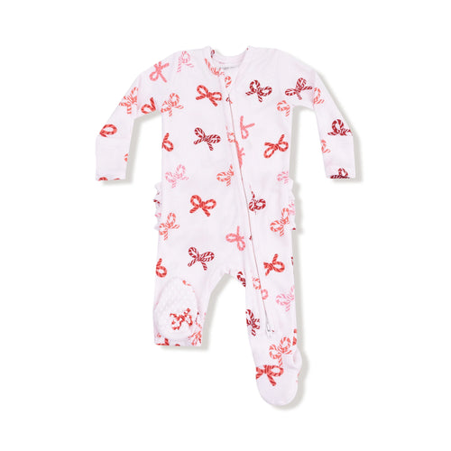 Candy Cane Bows 2 Way Zipper Ruffle Back Footie