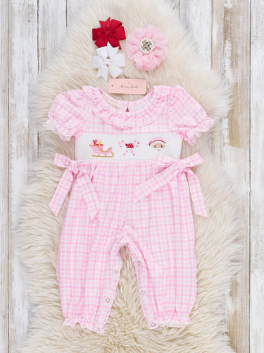Pink Christmas Eve Smocked Plaid Romper