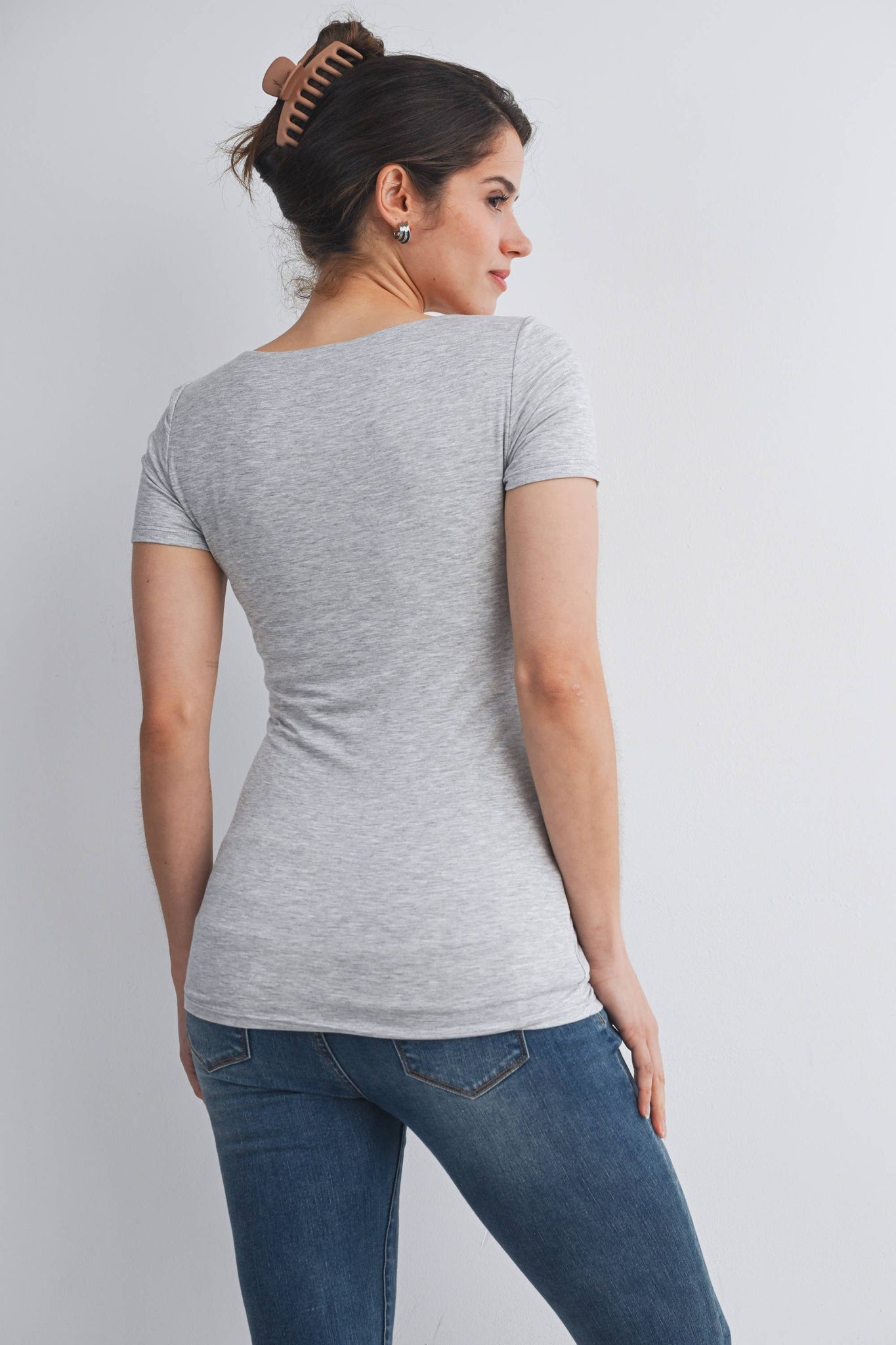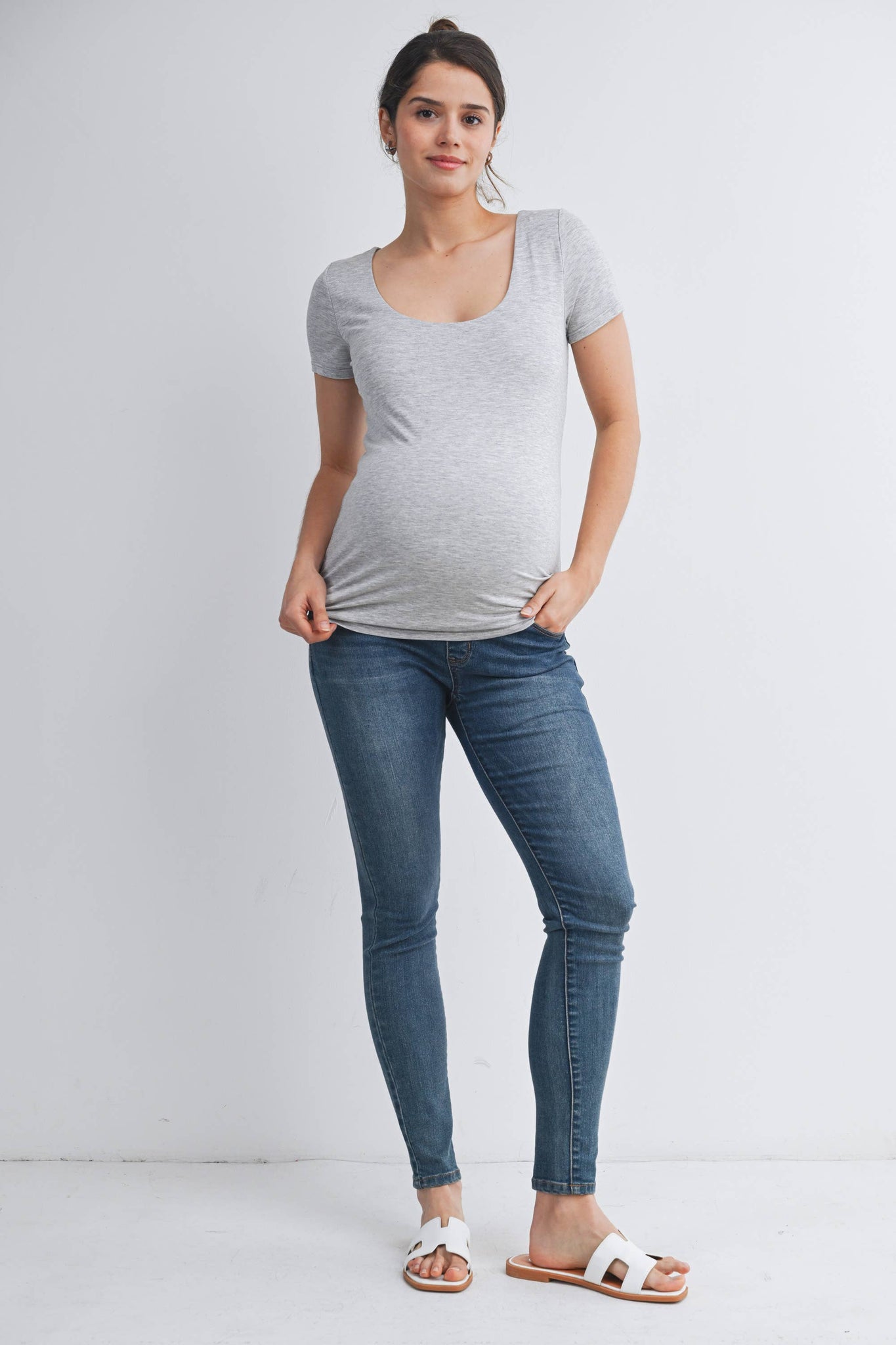 Short Sleeve Scoop Neck Maternity Knit T-Shirt.